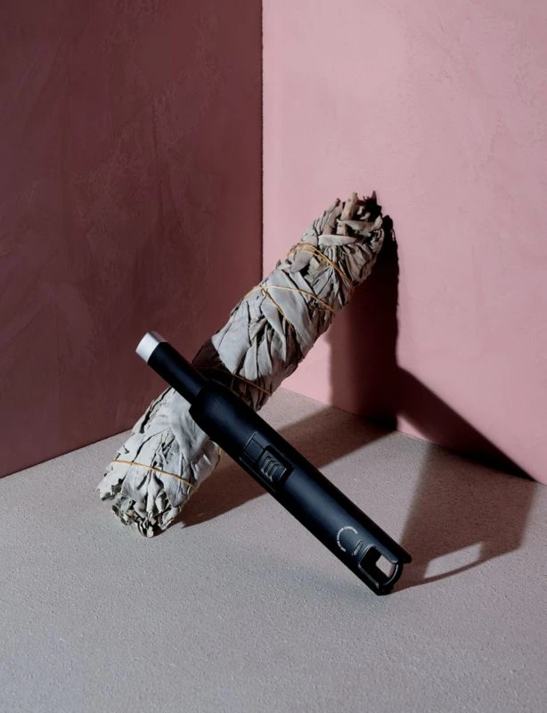 Sleek black USB candle lighter uses electrical energy instead of harmful butane gas to light candles indoors and out. Plug in to recharge. CB2 exclusive.