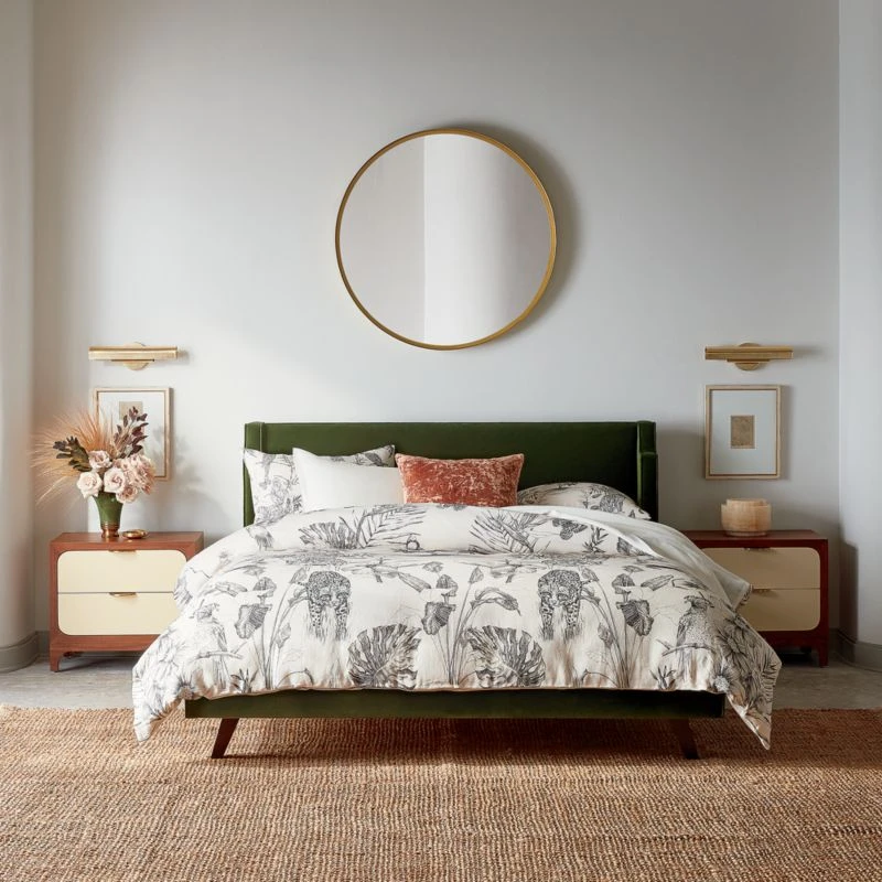 British fashion designer Matthew Williamson veers in a neutral direction with a jungle duvet design that looks plucked from an eccentric English manor. Initially sketched by hand in the designer’s studio, the monochrome collection is made of a high-quality cotton/linen blend in a soft, parchment hue, giving it a vintage-like quality. An illustrative addition to neutral and colorful spaces alike. CB2 exclusive.