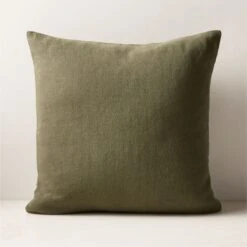 Tuck Green Linen Throw Pillow With Down-Alternative Insert 20”