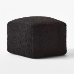 Black Boucle Throw Pillow With Down-Alternative Insert 48”x12”