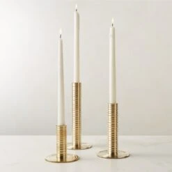 Small candle holder begins as a solid piece of pure alabaster, then is carefully carved into an elegant cylindrical shape. Polished to a shine, it becomes luminous when a pillar candle flame flickers within. As alabaster is a natural stone, each piece will have variations that ensure its unique beauty. CB2 exclusive.