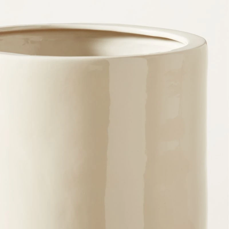 White stoneware floor vase embodies a classic minimalist aesthetic. The elongated silhouette commands any space, whether showcasing tall greenery or dried botanicals. CB2 exclusive.