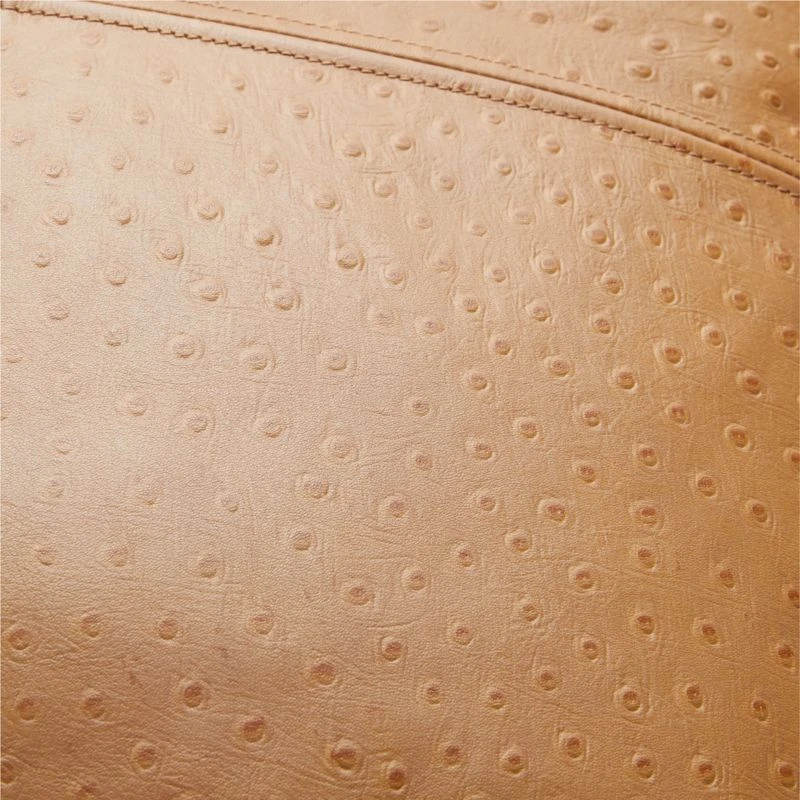 Supple tan leather is embossed with an ostrich print and pieced together with matching thread in this wildly stylish pillow. Flips to solid cotton back, reactive dyed to match. Much like real ostrich, no two pillows will sport exactly the same pattern, and leather construction means the color will vary and patina over time as well. CB2 pillows include a pillow insert in your choice of feather-down or down alternative. CB2 exclusive.