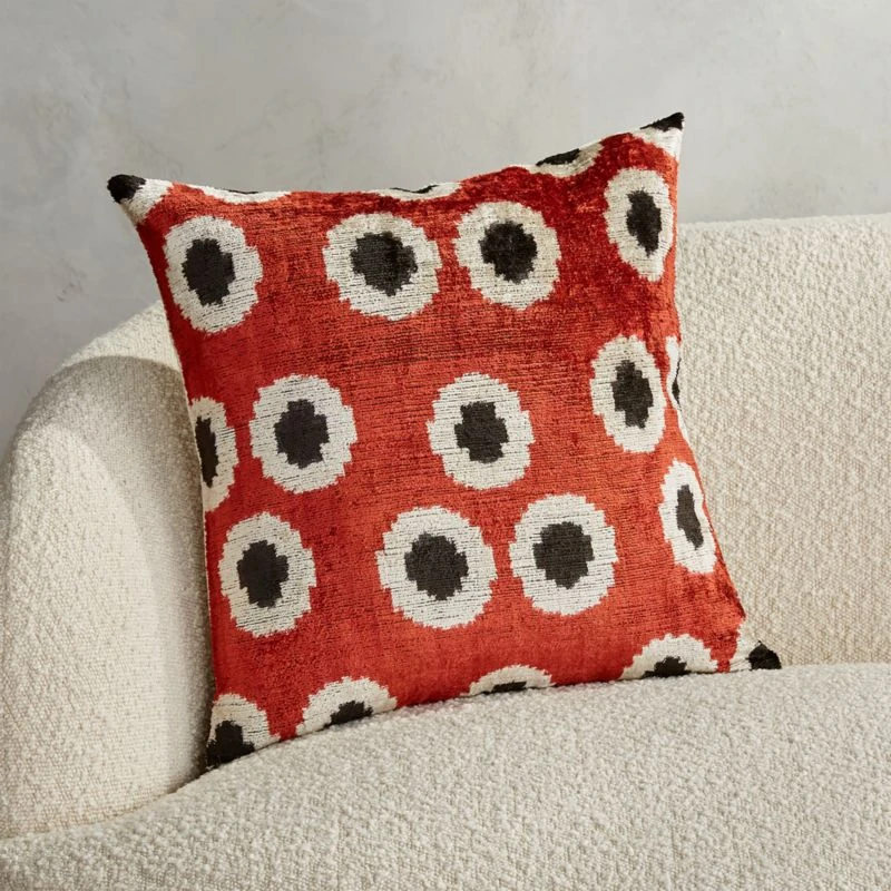 Turkish silk threads are handloomed into a rich, velvet-like texture to create one of the most sumptuous, luxurious pillows we’ve ever seen. Because the silk is collected from different areas, there will be slight differences in color, as well as variations in the weave due to the handcrafted nature of the process. Knife edge with a hidden zipper closure, pillow flips to a solid neutral fine linen back. CB2 pillows include a pillow insert in your choice of feather-down or down alternative. CB2 exclusive.